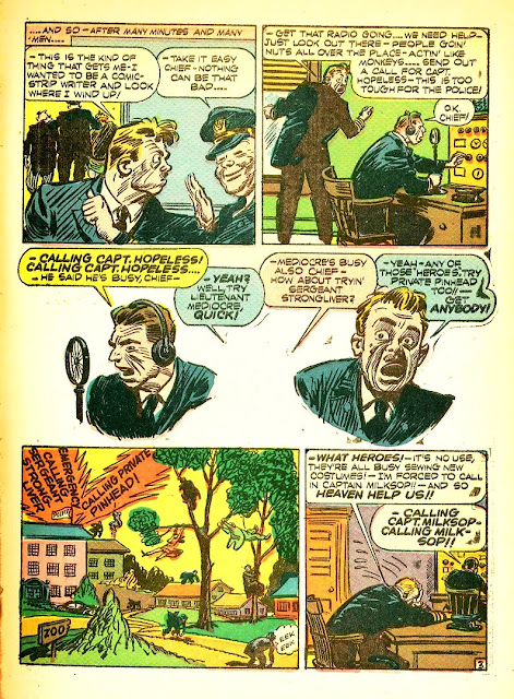 But who cares? For now, before I phase again, let me post a classic from Joe Maneely and Stan Lee. Now, I realize that this story has been posted on Karswell's blog previously, but I didn't know that when I scanned and cleaned up the pages from my own comic book months ago. So I figured I'd post it since I spent the time on it. So enjoy another beautifully drawn story by the late great Joe Maneely. The colors in this one are particularly vivid for a 1950's comic, making it very pretty to look at.